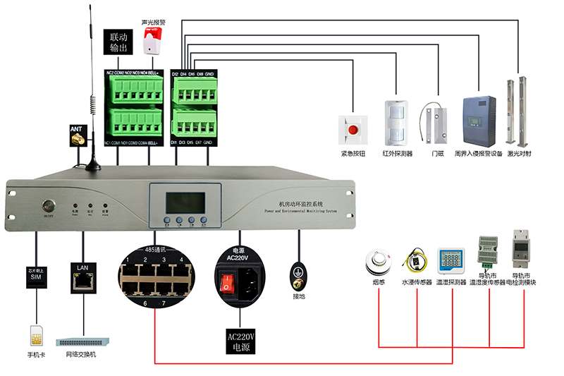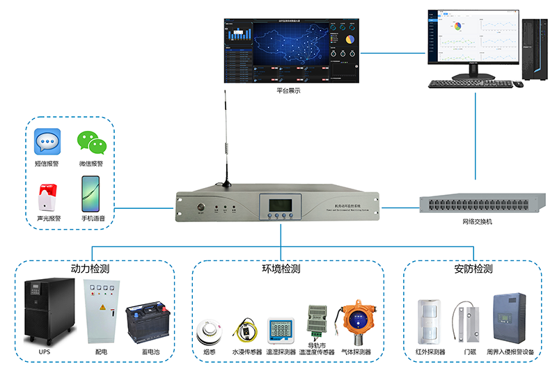 動環主機是一款集動力環境監控功能及入侵防盜報警于一體的設備,可實時監測機房、基站等場所的動力設備運行狀態、環境參數、入侵報警,如市電、UPS、蓄電池、溫濕度、煙霧、漏水、門禁